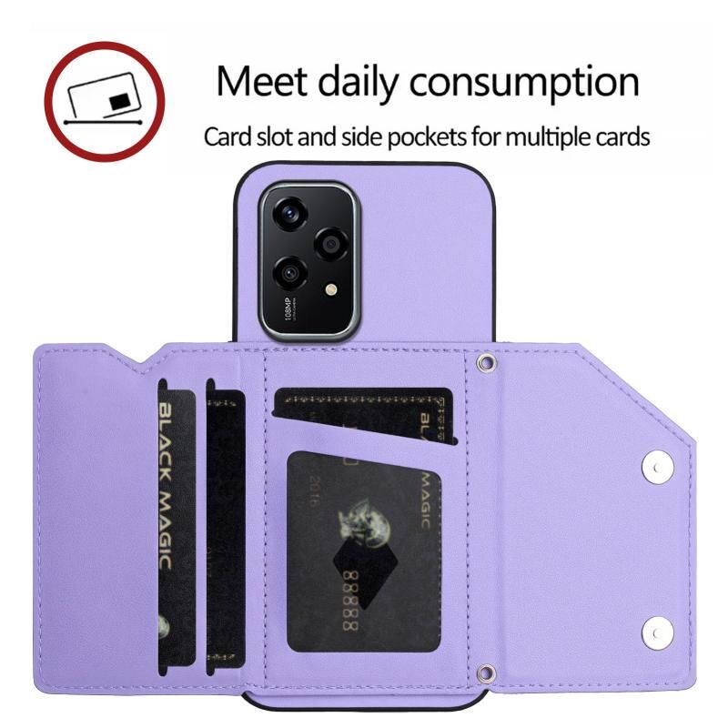 1. Πολυλειτουργικός Σχεδιασμός: Συνδυάζει λειτουργίες θήκης τηλεφώνου και πορτοφολιού για εύκολη μεταφορά.
