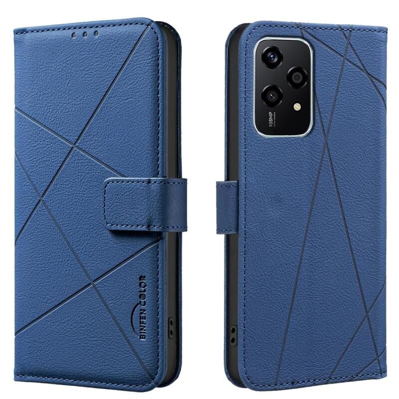 Θήκη κινητού τηλεφώνου από δέρμα με μοτίβο γεωμετρικού σχεδίου και τεχνολογία RFID για Honor 200 Lite (Καφέ)