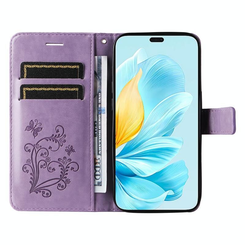 Για Honor 200 Lite Παγκόσμια 3D πεταλούδα ανάγλυφο μοτίβο Flip δέρμα τηλέφωνο υπόθεση (μωβ)
