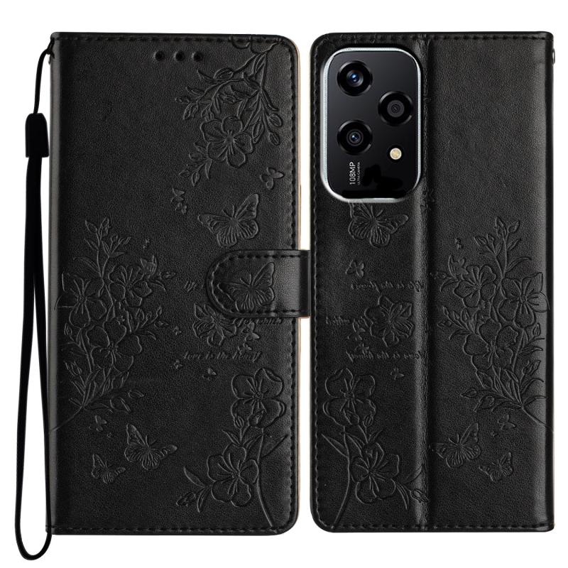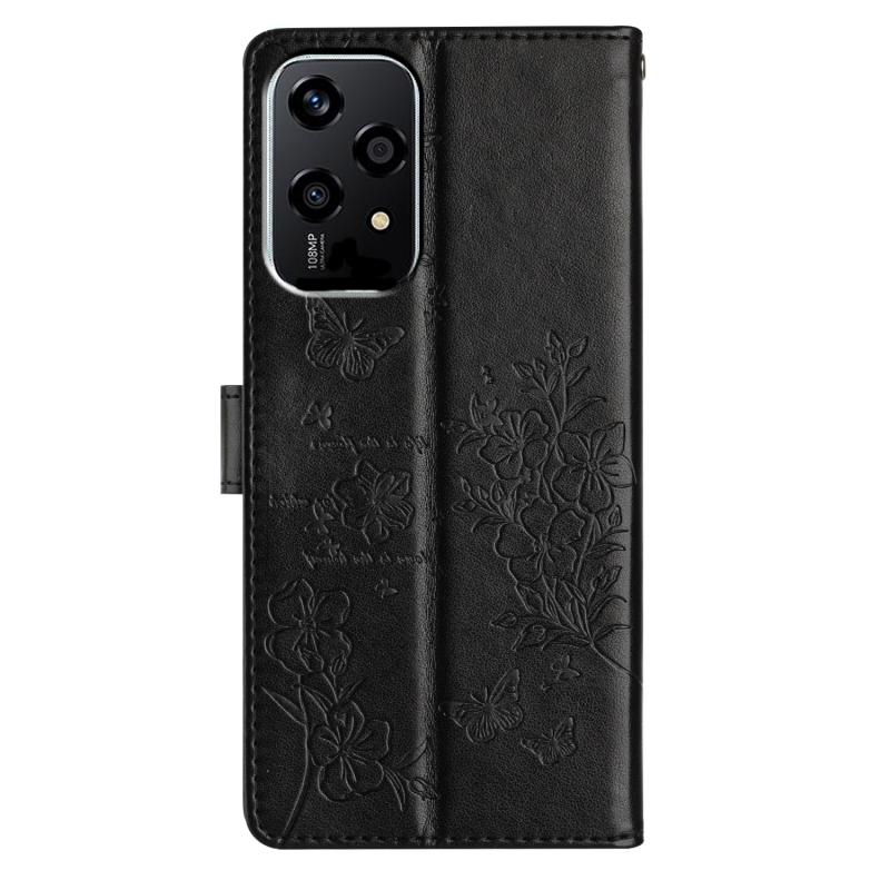 For Honor 200 Lite Global Butterflies And Flowers Leather Phone Case(Black)