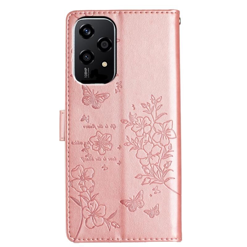 Θήκη τηλεφώνου από δέρμα με σχέδια πεταλούδες και λουλούδια για Honor 200 Lite Global (Χρυσό)