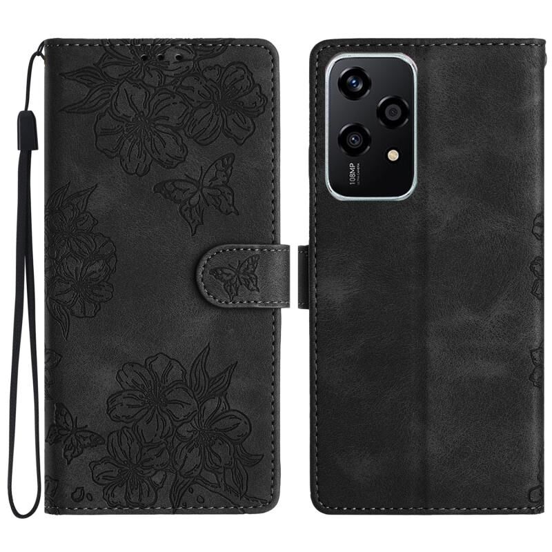 Θήκη τηλεφώνου Honor 200 Lite Global Cherry Blossom Butterfly Skin Feel Embossed PU (Κόκκινη)