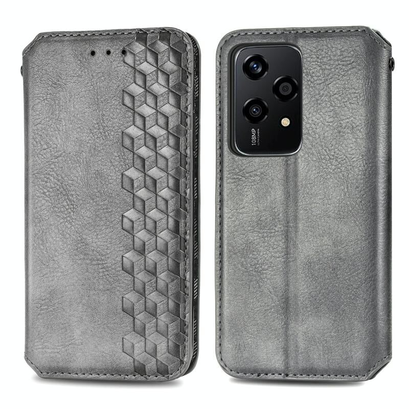 Για Honor 200 Lite Παγκόσμια κυβικά πλέγμα πιέζεται μαγνητική δερμάτινη θήκη τηλεφώνου (γκρι)