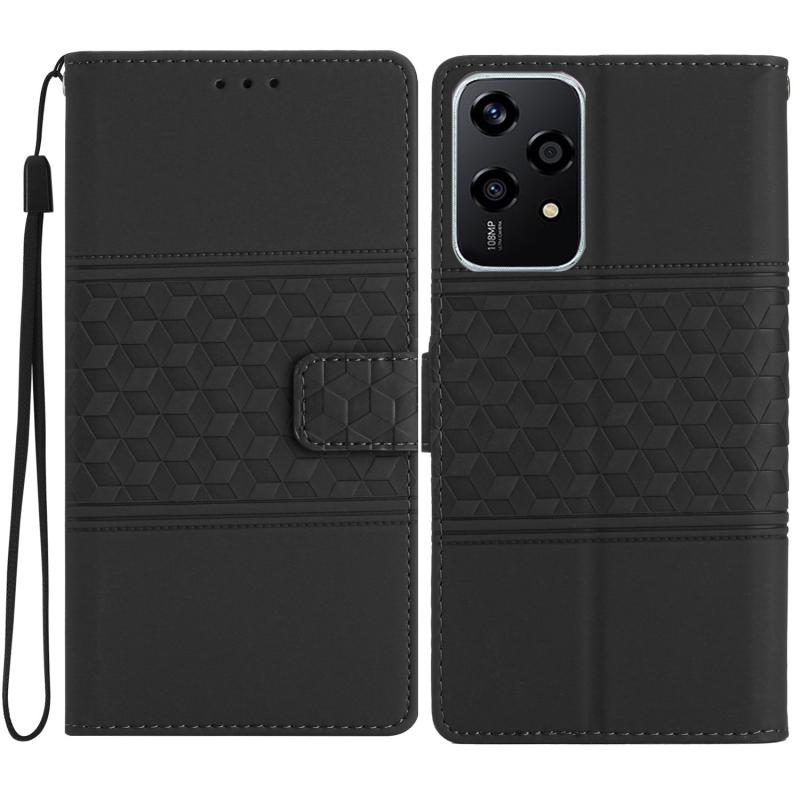 For Honor 200 Lite Global Diamond Embossed Skin Feel Leather Phone Case(Black)