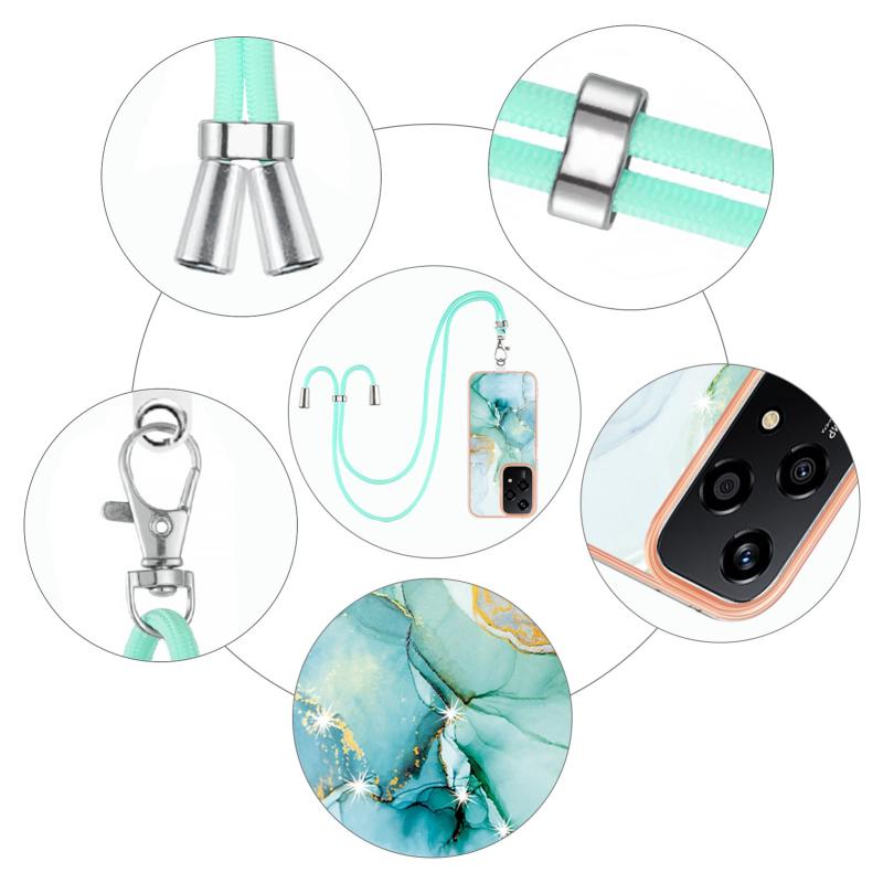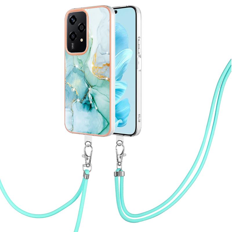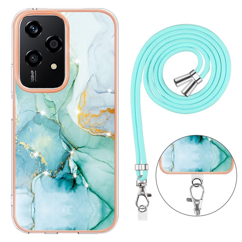 For Honor 200 Lite Global Electroplating Marble Dual-side IMD Phone Case with Lanyard(Green 003)