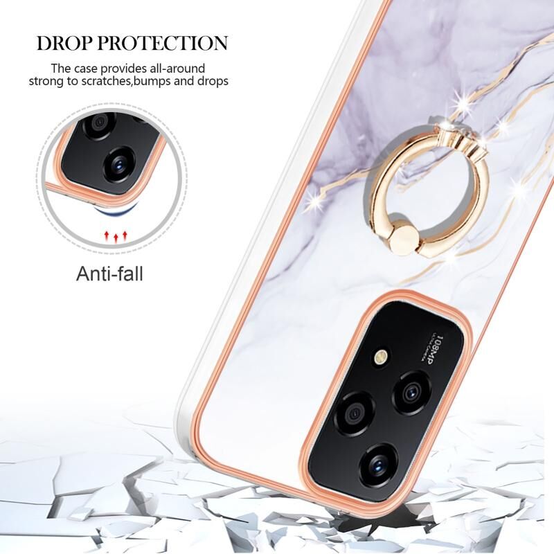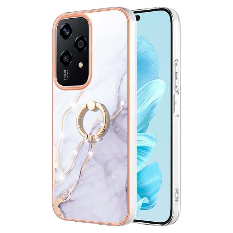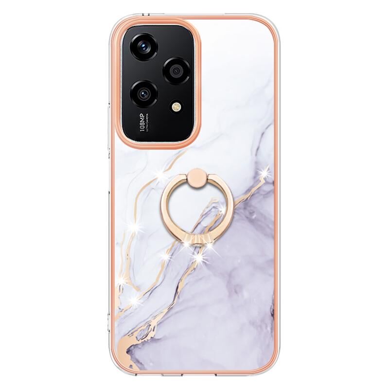Θήκη τηλεφώνου για Honor 200 Lite Global Electroplating Marble IMD TPU με δακτύλιο στήριξης (Λευκό 006)