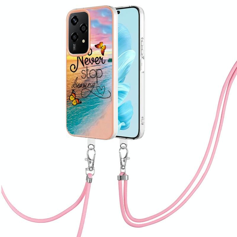 Θήκη προστασίας για Honor 200 Lite Global με μοτίβο ηλεκτρολυτικής επιμετάλλωσης IMD TPU, ανθεκτική σε κρούσεις, με κορδόνι λαιμού (Πεταλούδα που κυνηγάει όνειρα)