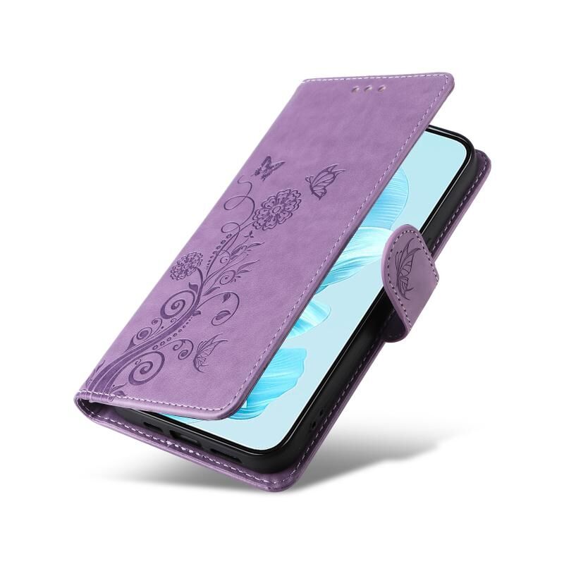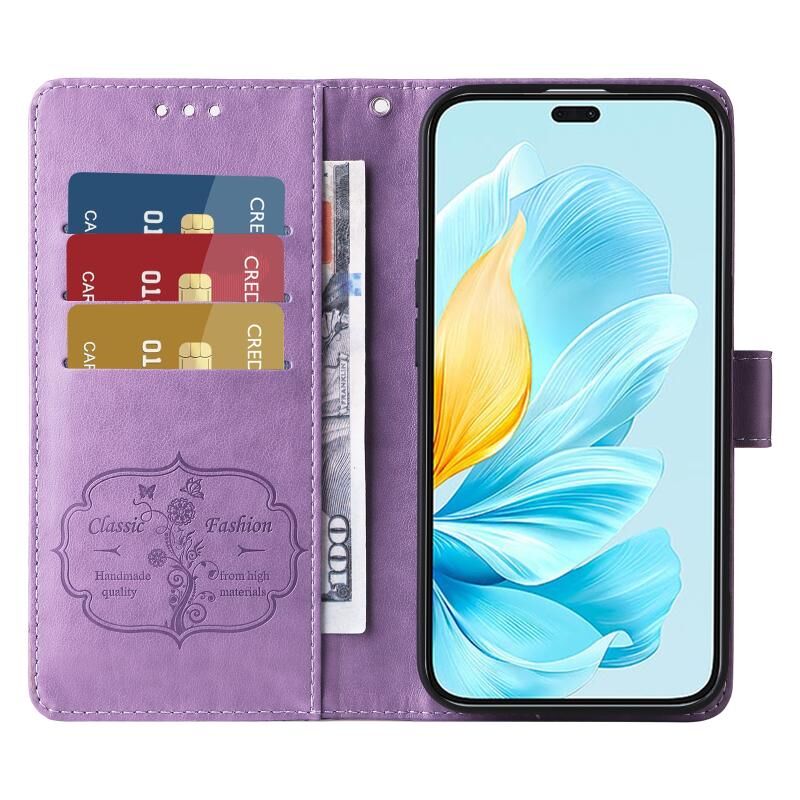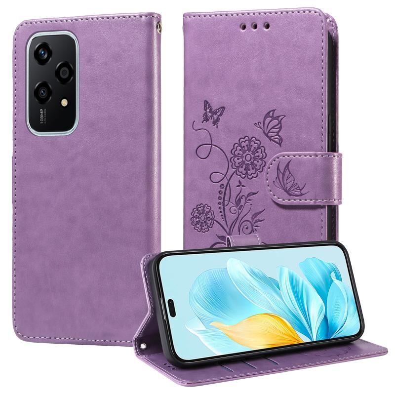 For Honor 200 Lite Global Embossed Butterfly Flowers Leather Phone Case(Purple)