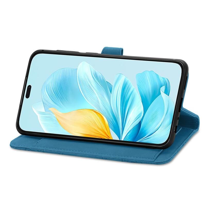 Για Honor 200 Lite Παγκόσμια ανάγλυφο λουλούδι φερμουάρ δερμάτινη θήκη τηλεφώνου (μπλε)