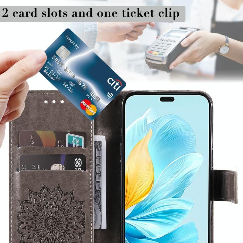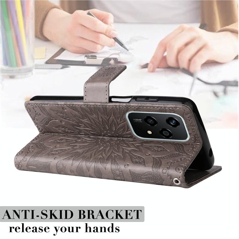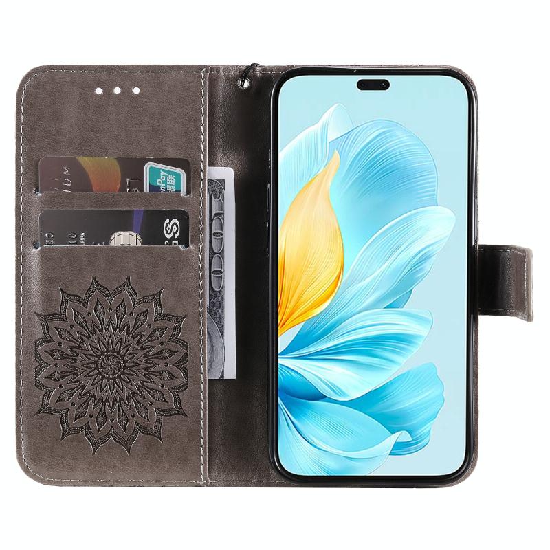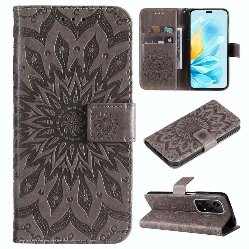 For Honor 200 Lite Global Embossed Sunflower Pattern Flip Leather Phone Case(Grey)