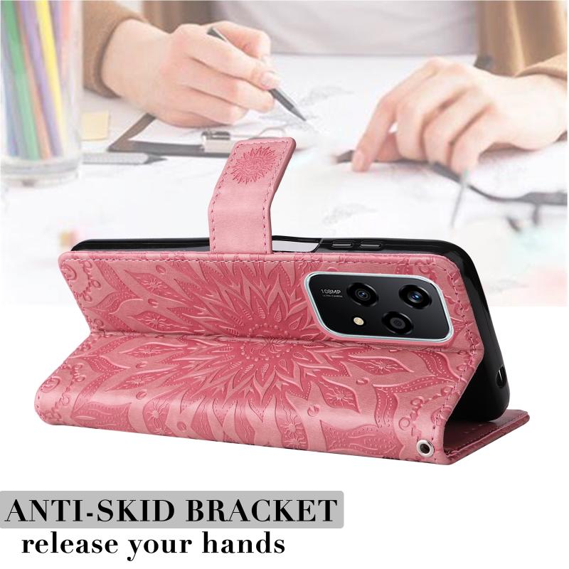 For Honor 200 Lite Global Embossed Sunflower Pattern Flip Leather Phone Case(Pink)