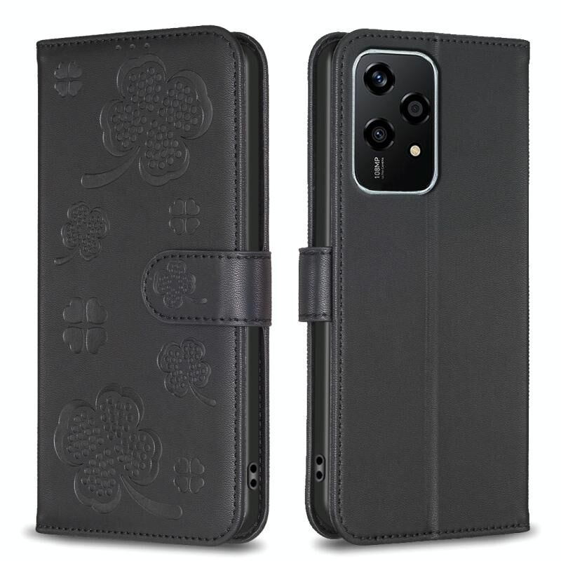 For Honor 200 Lite Global Four-leaf Embossed Leather Phone Case(Black)