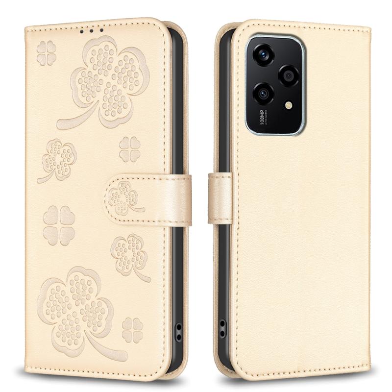 For Honor 200 Lite Global Four-leaf Embossed Leather Phone Case(Gold)