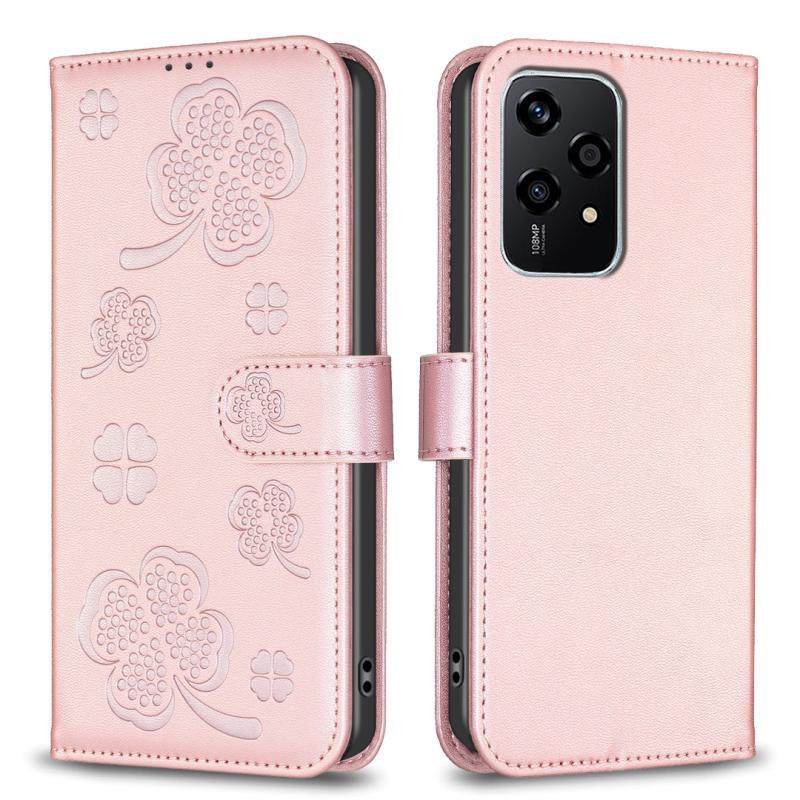 For Honor 200 Lite Global Four-leaf Embossed Leather Phone Case(Pink)