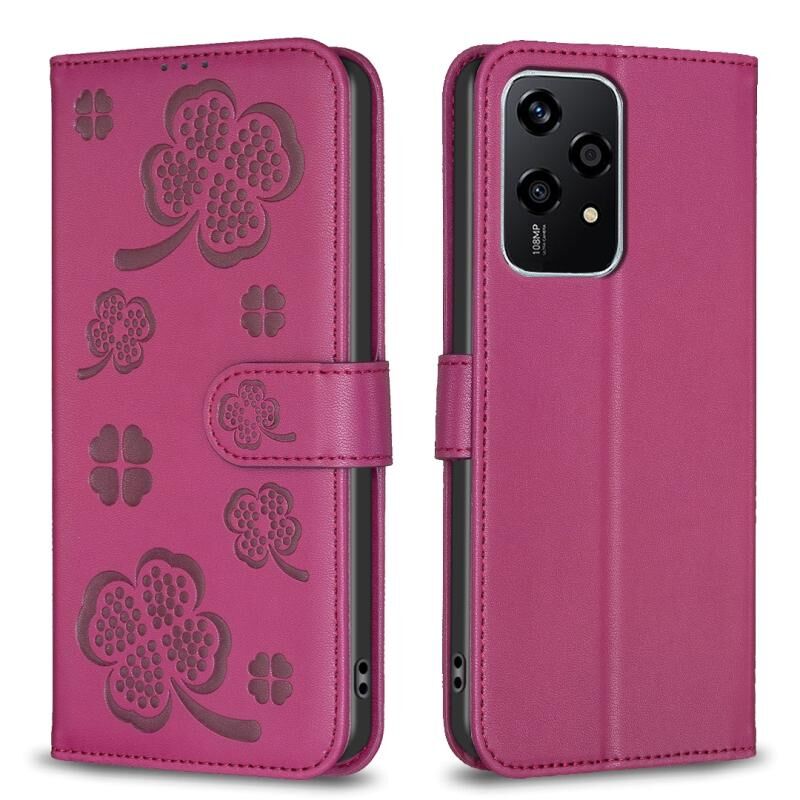 For Honor 200 Lite Global Four-leaf Embossed Leather Phone Case(Rose Red)