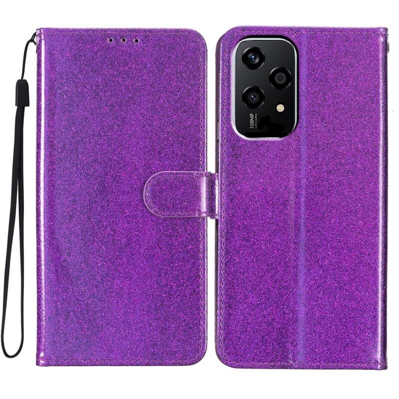 Θήκη τηλεφώνου Honor 200 Lite Global Glitter Powder Flip από δέρμα (Μαύρο)