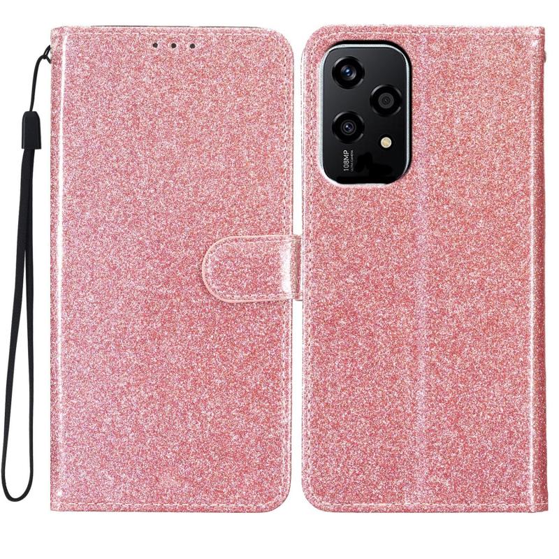 For Honor 200 Lite Global Glitter Powder Flip Leather Phone Case(Rose Gold)