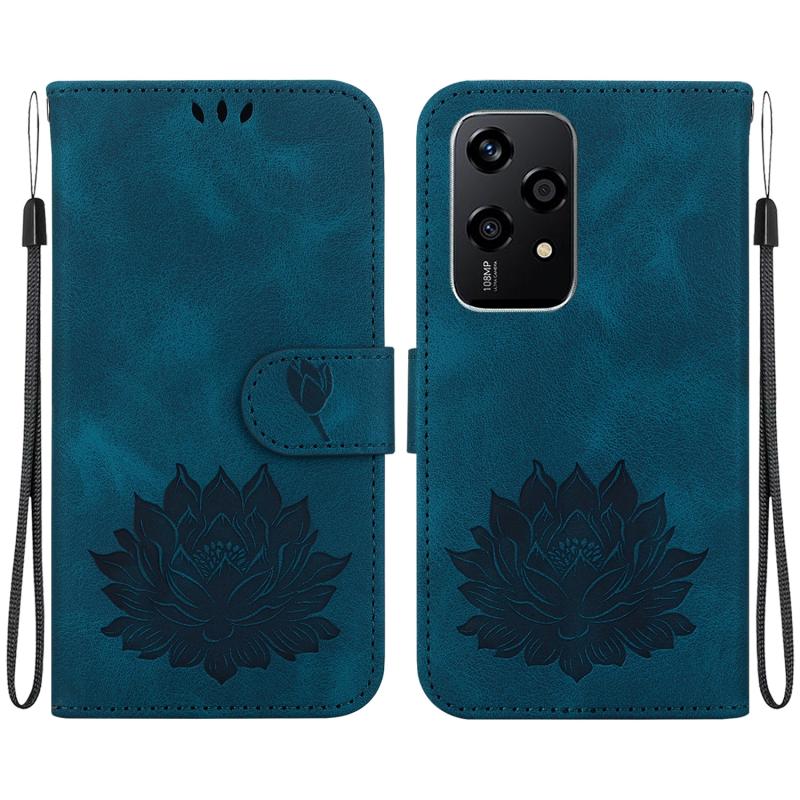 For Honor 200 Lite Global Lotus Embossed Leather Phone Case(Dark Blue)