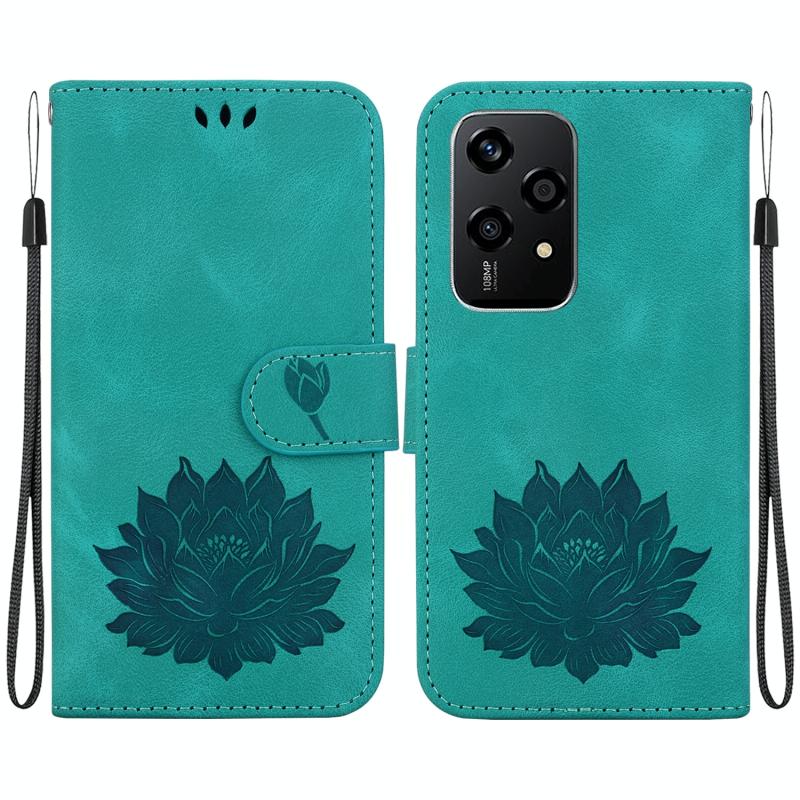For Honor 200 Lite Global Lotus Embossed Leather Phone Case(Green)