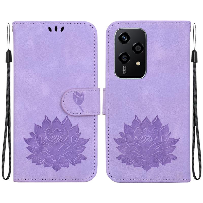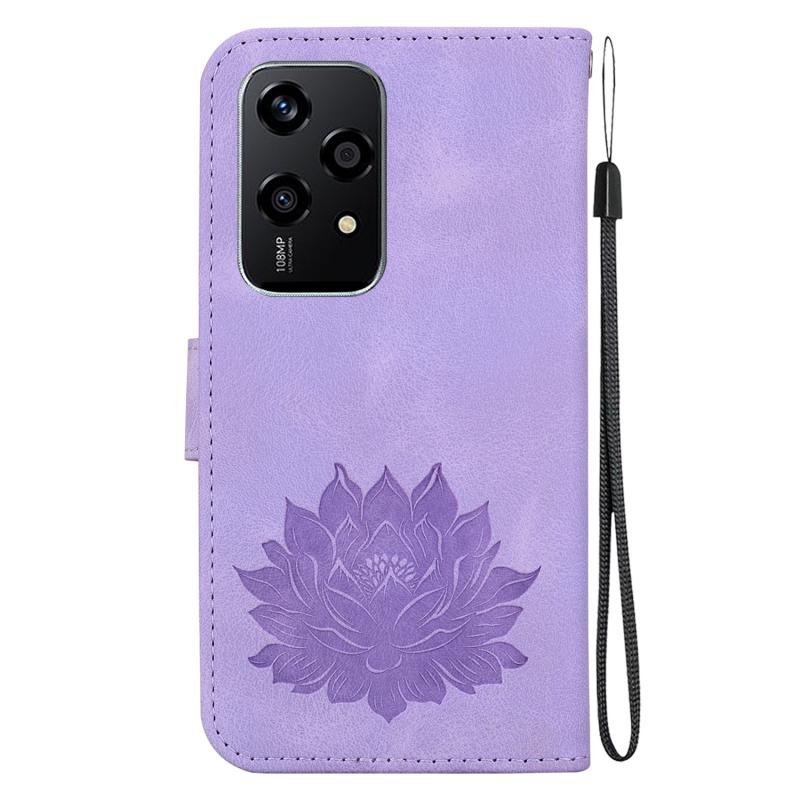 For Honor 200 Lite Global Lotus Embossed Leather Phone Case(Purple)