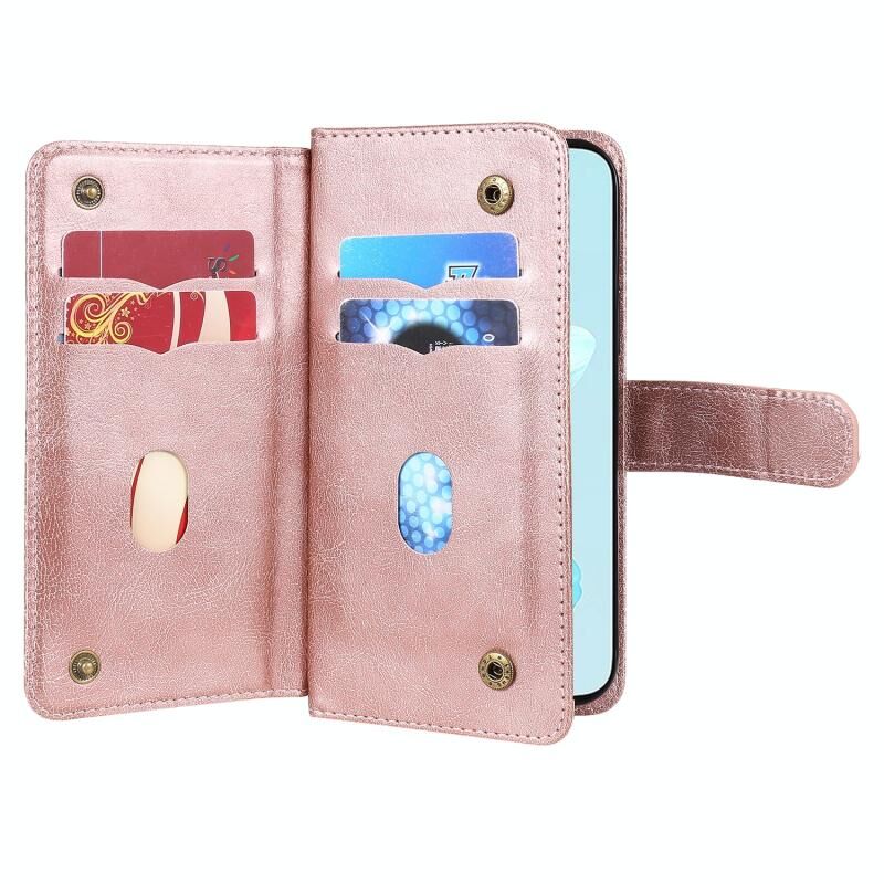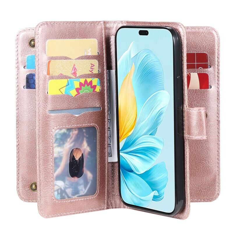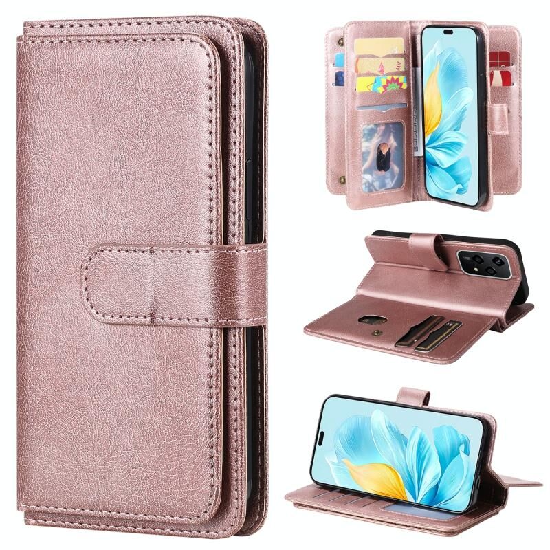 Για Honor 200 Lite Παγκόσμια Πορτοφόλι πολλαπλών λειτουργιών 10 υποδοχές καρτών Δερμάτινη θήκη τηλεφώνου (Rose Gold)