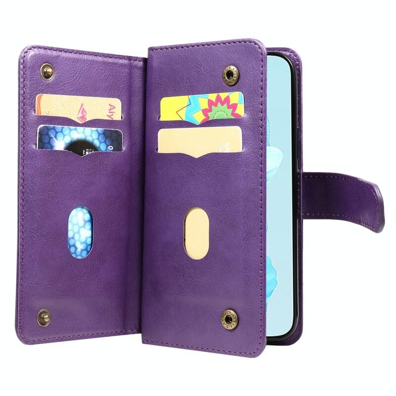Για Honor 200 Lite Παγκόσμια Πορτοφόλι πολλαπλών λειτουργιών 10 υποδοχές καρτών Δερμάτινη θήκη τηλεφώνου (Violet)