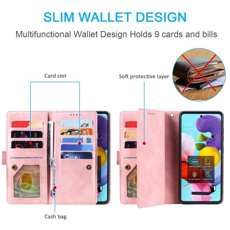 5. Πρακτική λειτουργία θήκης καρτών: Η θήκη καρτών και η τσέπη πορτοφολιού με φερμουάρ και το διαμέρισμα για μετρητά μπορούν να αποθηκεύσουν τις πιστωτικές σας κάρτες, μετρητά ή μικρά χαρτονομίσματα που χρειάζεστε καθημερινά.