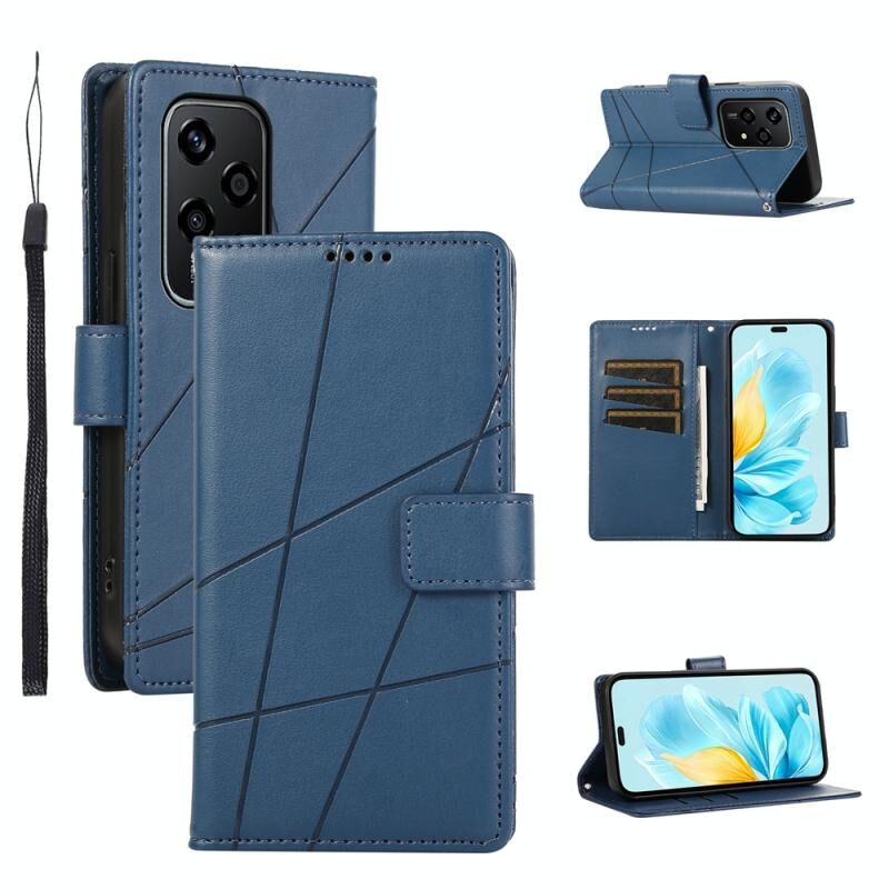 Θήκη τηλεφώνου Honor 200 Lite Global PU με ανάγλυφη υφή δέρματος και διακοσμητική γραμμή (Μπλε)