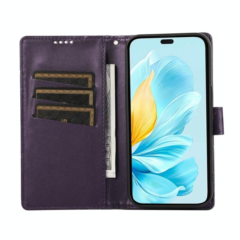 Θήκη τηλεφώνου Honor 200 Lite Global PU με ανάγλυφη υφή δέρματος και διακοσμητική γραμμή (Μωβ)