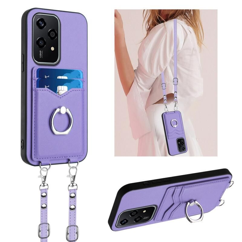 Για Honor 200 Lite Global R20 Crossbody σχοινί δαχτυλίδι κάρτα κάτοχος υπόθεση τηλεφώνου (μωβ)