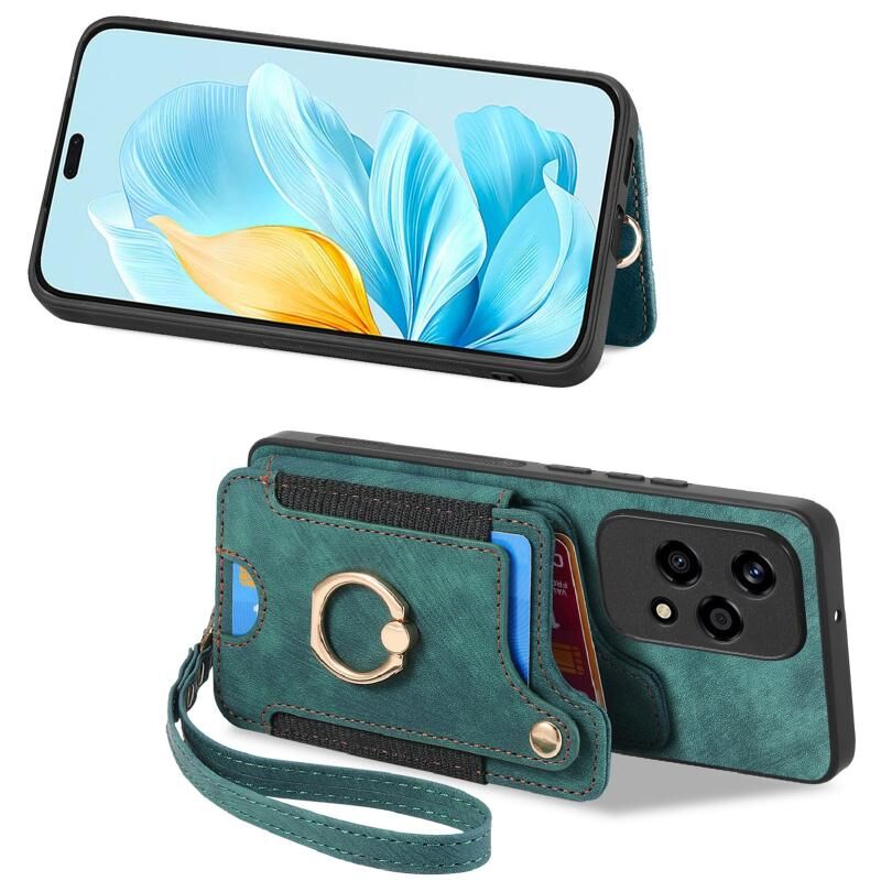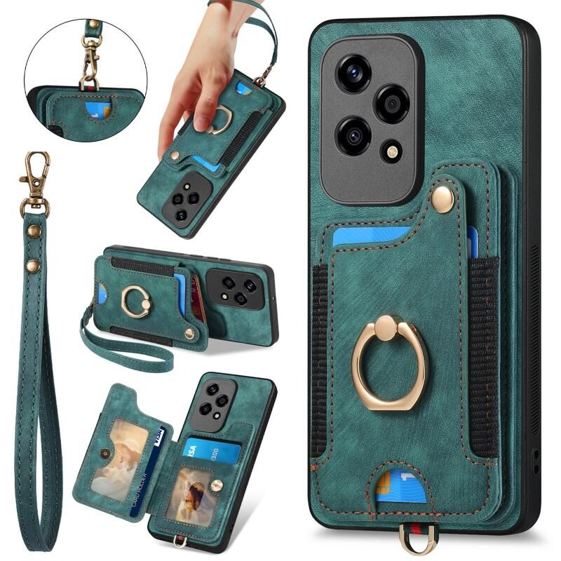 Για Honor 200 Lite Παγκόσμια Retro δέρμα-συναίσθημα δαχτυλίδι πολυ-κάρτα RFID πορτοφόλι τηλέφωνο υπόθεση (πράσινο)
