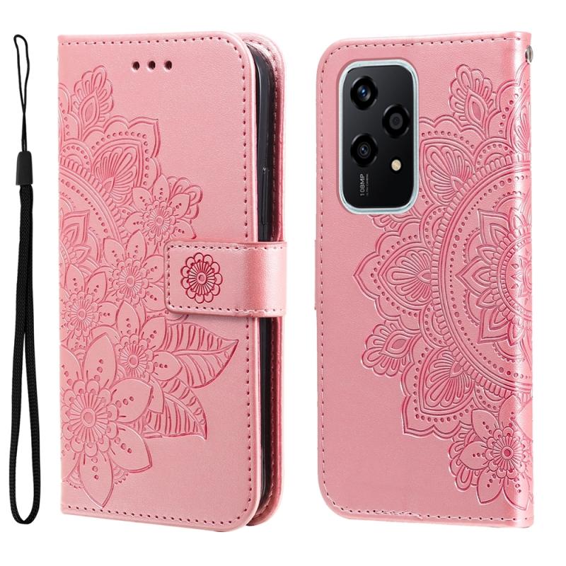 Θήκη τηλεφώνου Honor 200 Lite Global με δέρμα ανάγλυφο επτά πέταλα λουλουδιών (Ανοιχτό Μωβ)