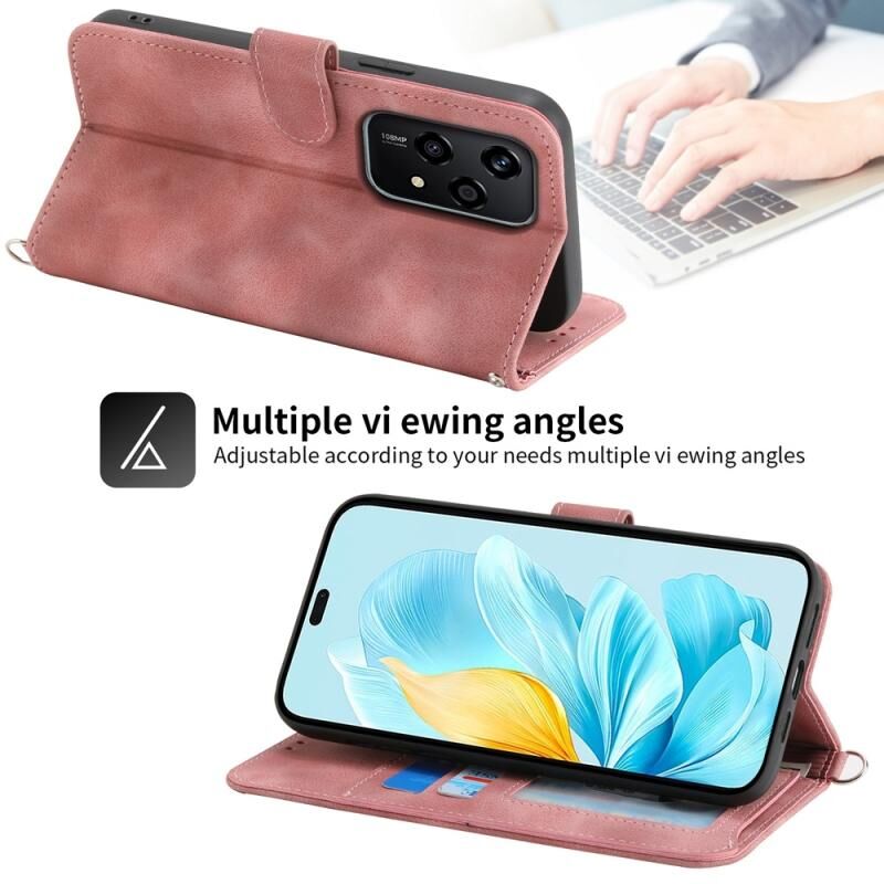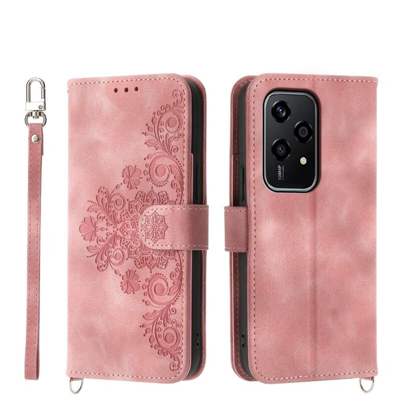 Θήκη τηλεφώνου από δέρμα με ανάγλυφα λουλούδια και πορτοφόλι για Honor 200 Lite Global (Μωβ)