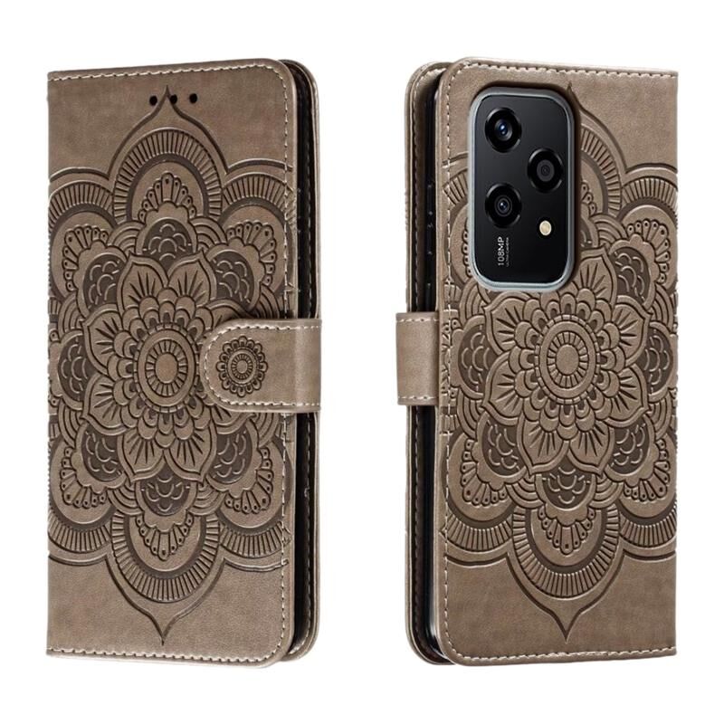 Για Honor 200 Lite Global Sun Mandala ανάγλυφο μοτίβο τηλέφωνο δερμάτινη θήκη (γκρι)