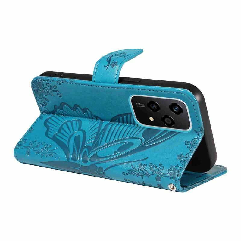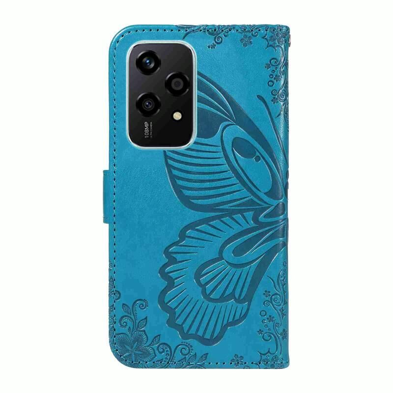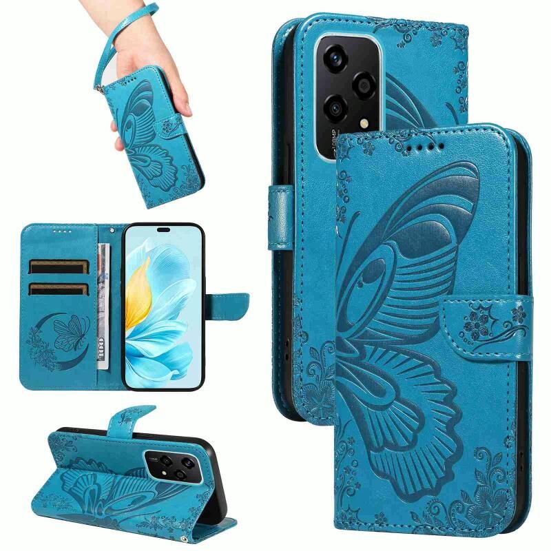 Θήκη τηλεφώνου από δέρμα με ανάγλυφο σχέδιο πεταλούδας Swallowtail για Honor 200 Lite Global (Μπλε)