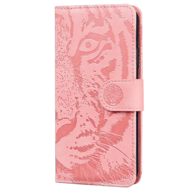 Θήκη τηλεφώνου από δέρμα με σχέδιο Tiger Embossing Flip για Honor 200 Lite Global (ρόζ)