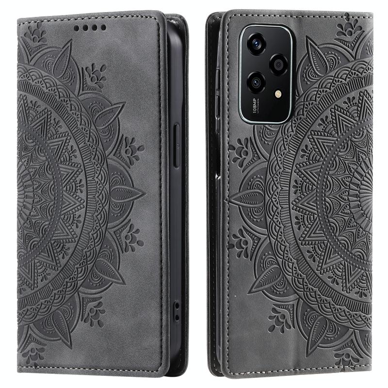 For Honor 200 Lite Global Totem Embossed Magnetic Leather Phone Case(Grey)