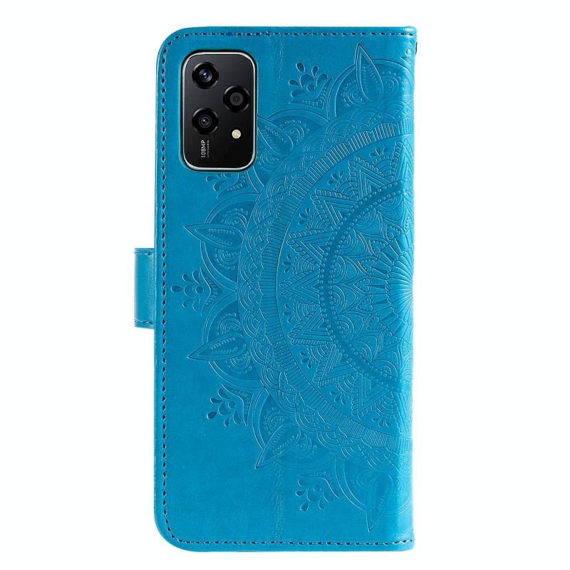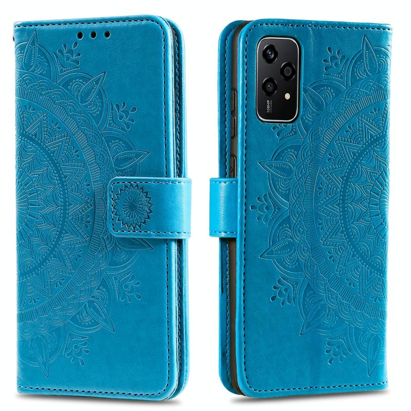For Honor 200 Lite Global Totem Flower Embossed Leather Phone Case with Lanyard(Blue)