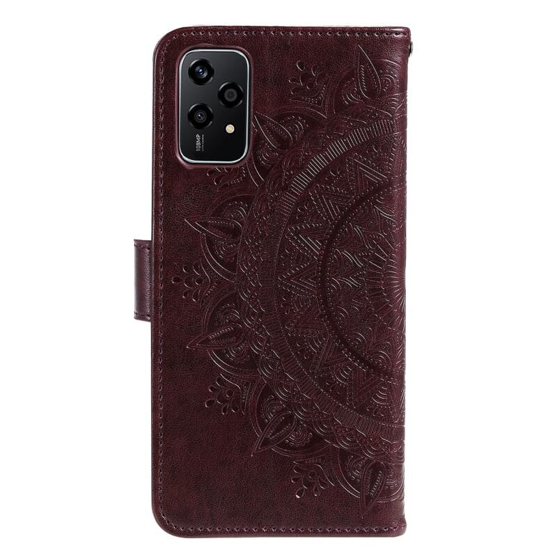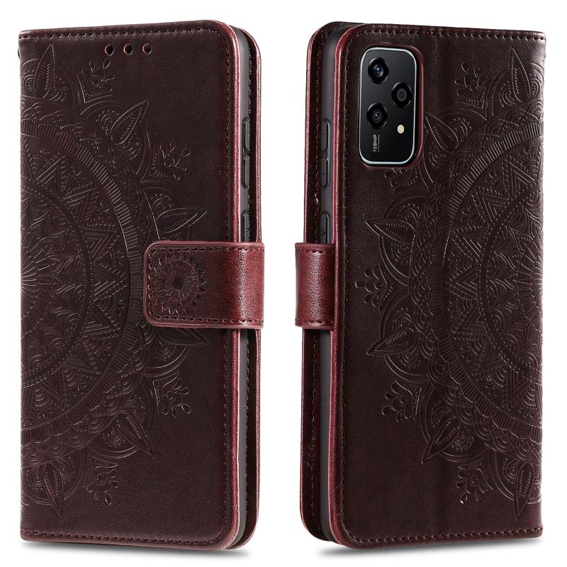 For Honor 200 Lite Global Totem Flower Embossed Leather Phone Case with Lanyard(Brown)