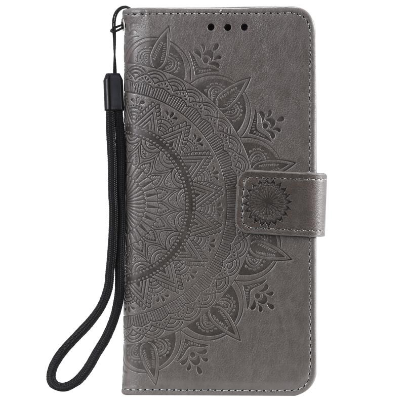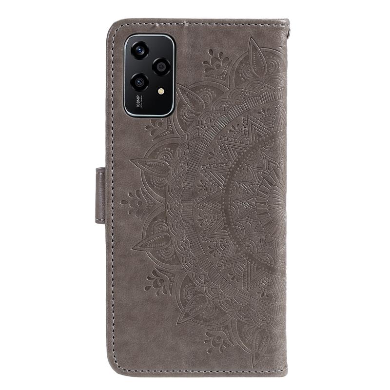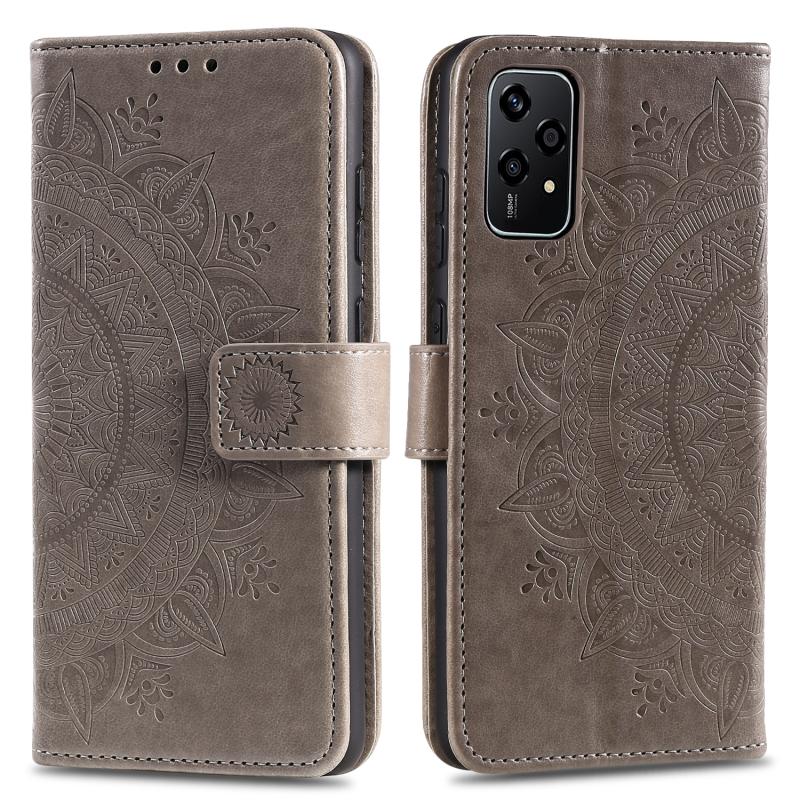 For Honor 200 Lite Global Totem Flower Embossed Leather Phone Case with Lanyard(Grey)