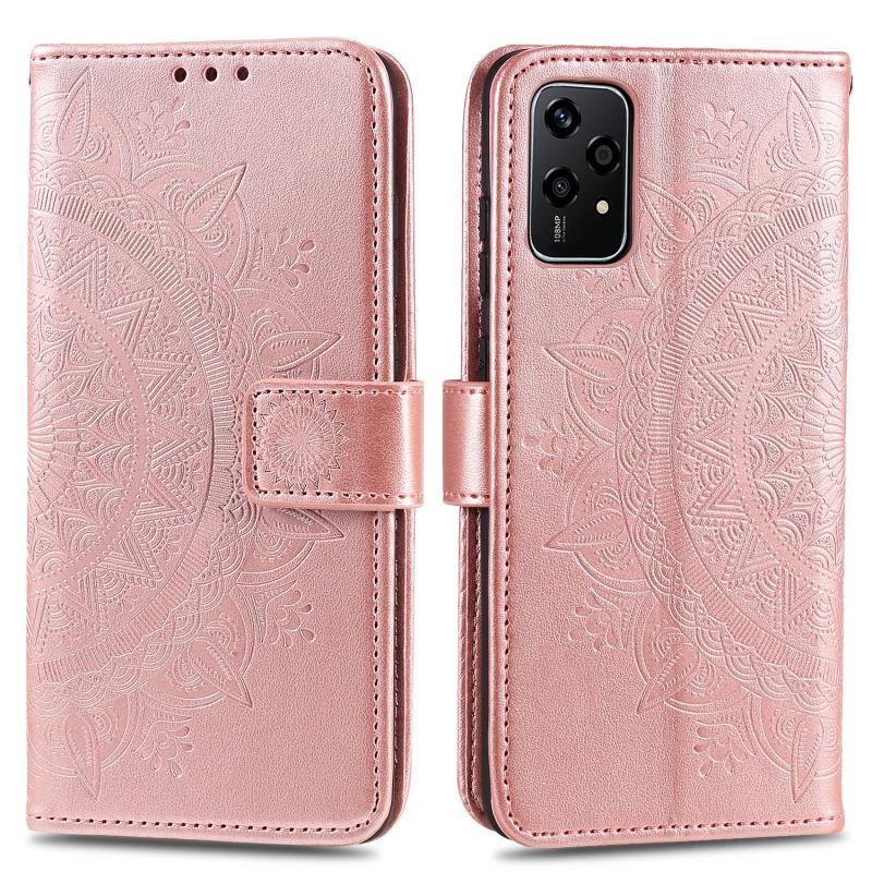 For Honor 200 Lite Global Totem Flower Embossed Leather Phone Case with Lanyard(Rose Gold)