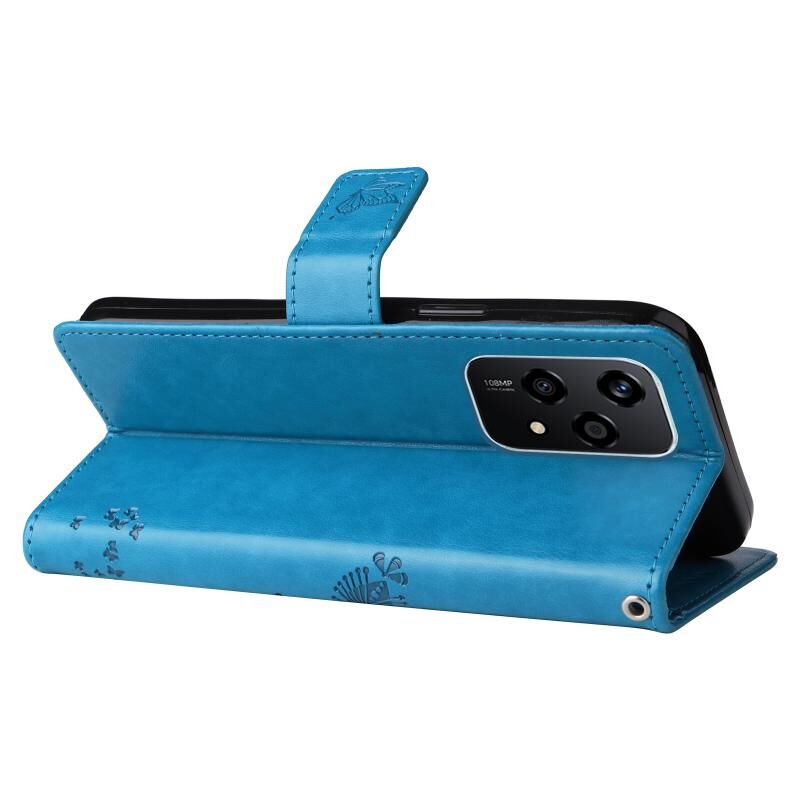 Θήκη τηλεφώνου από δέρμα με σχέδιο ανάγλυφου δέντρου & γάτας για Honor 200 Lite Global (Μπλε)