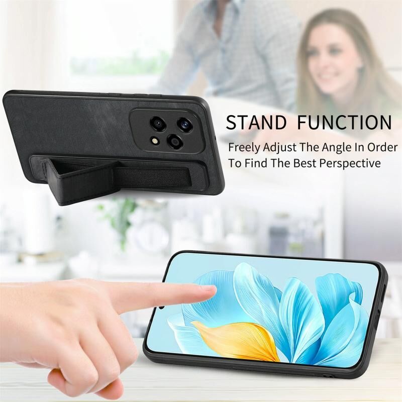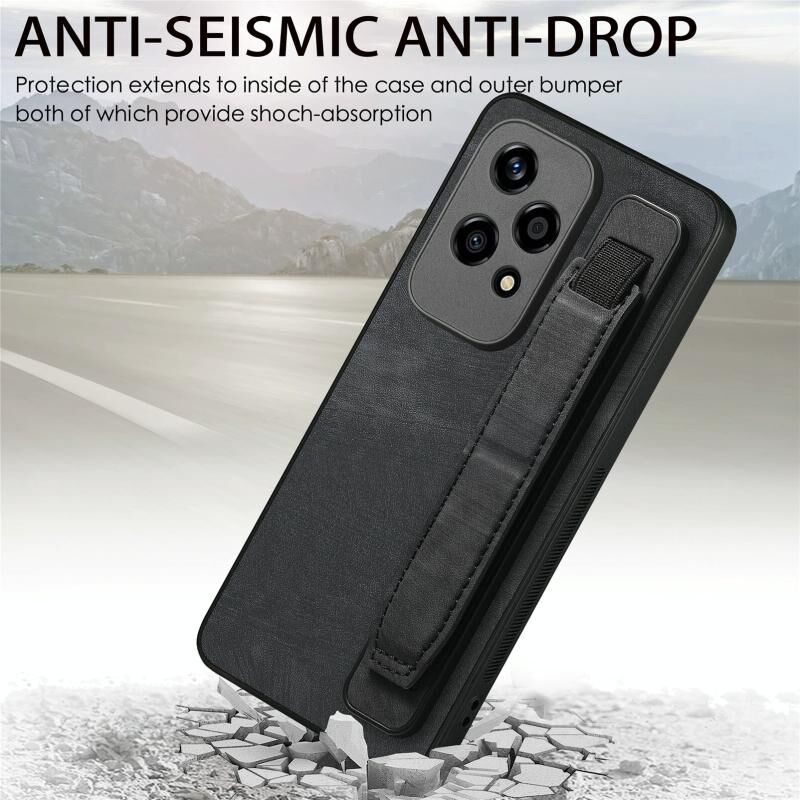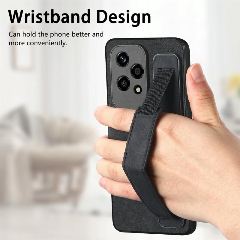 Για Honor 200 Lite Golbal Retro Wristband κάτοχος δέρμα πίσω τηλέφωνο υπόθεση (Μαύρο)