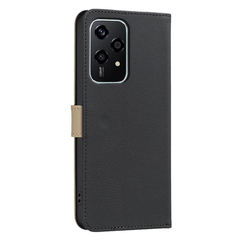 Θήκη τηλεφώνου από δέρμα RFID με σχέδιο κοίλου λουλουδιού και ραφές χρωμάτων για Honor 200 Lite (Μαύρο)