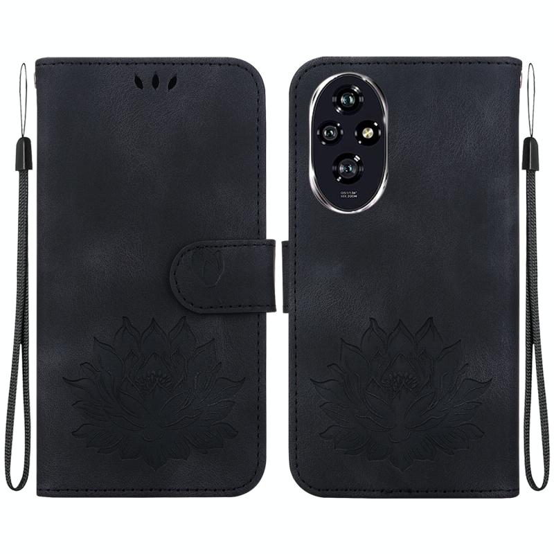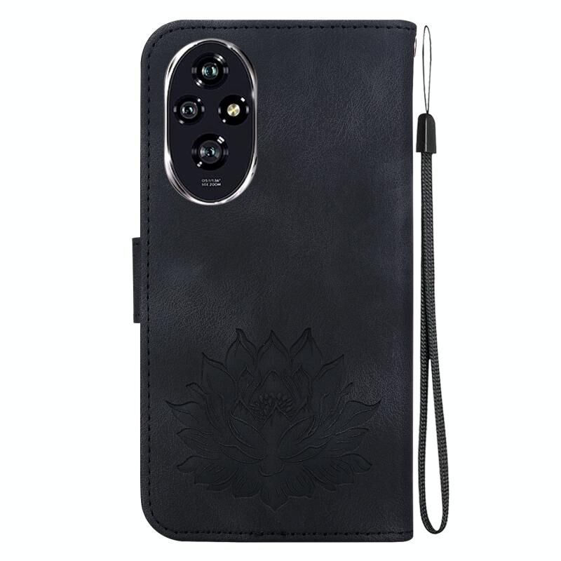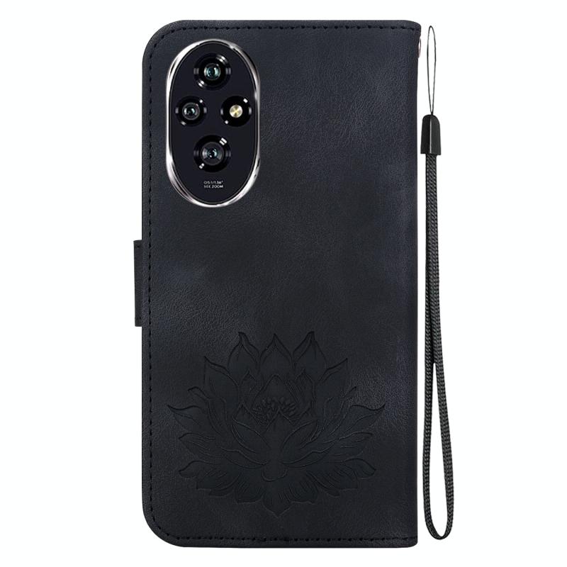For Honor 200 Lotus Embossed Leather Phone Case(Black)