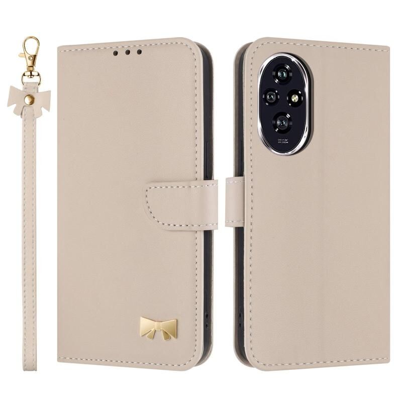 For Honor 200 Metal Bow Leather Phone Case with Hand Strap(Apricot)