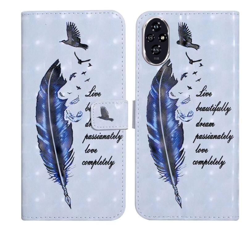 Θήκη τηλεφώνου δερμάτινη με ανάγλυφο σχέδιο 3D (Μπλε πεταλούδες) για Honor 200.