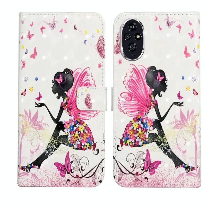 Θήκη τηλεφώνου από δέρμα με ανάγλυφη 3D σχεδίαση (Flower Fairy) για Honor 200.