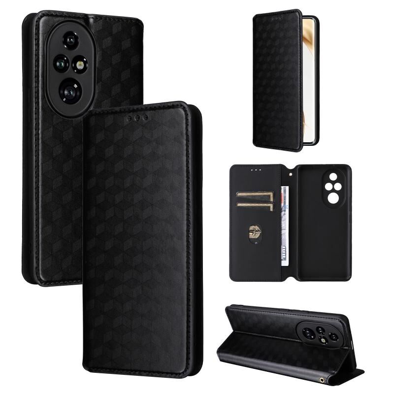 Θήκη τηλεφώνου δερμάτινη αναδιπλούμενη με υφή Cubic Grid για Honor 200 Pro 5G (Μαύρο)