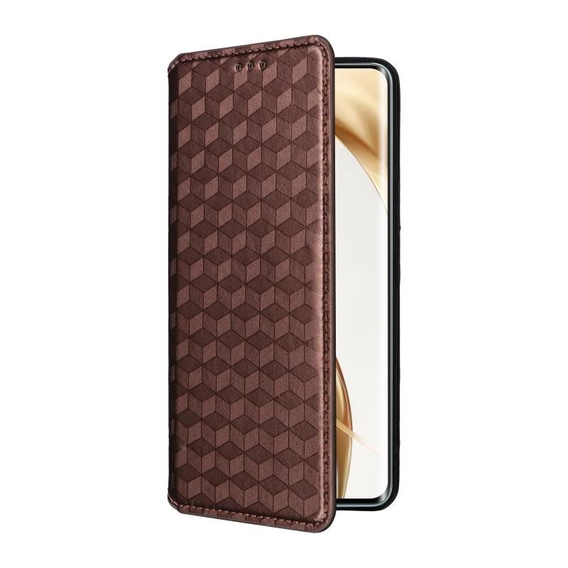 Θήκη τηλεφώνου δερμάτινη αναδιπλούμενη με υφή Cubic Grid για Honor 200 Pro 5G (Μαύρο)